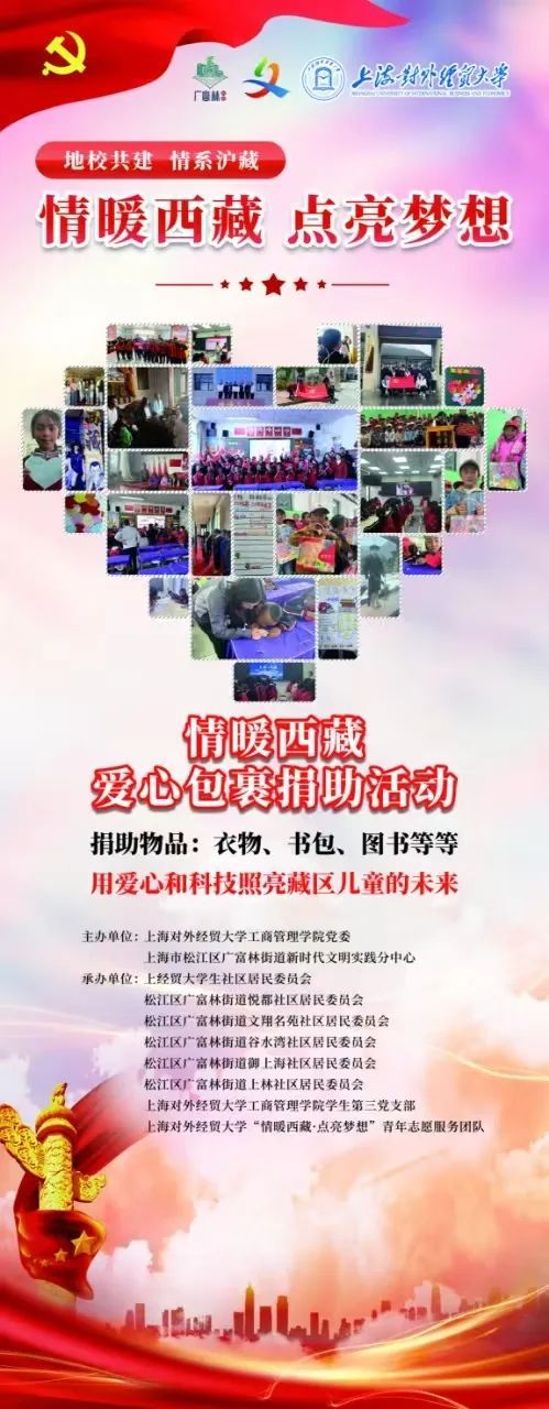 广富林街道新时代文明实践分中心与上海对外经贸大学工商管理学院共同开启活动,让尘封的物品焕发新生,让闲置的书籍点燃西藏孩子们对知识的渴望,鼓励居民朋友捐赠衣物、书包、图书等物品。