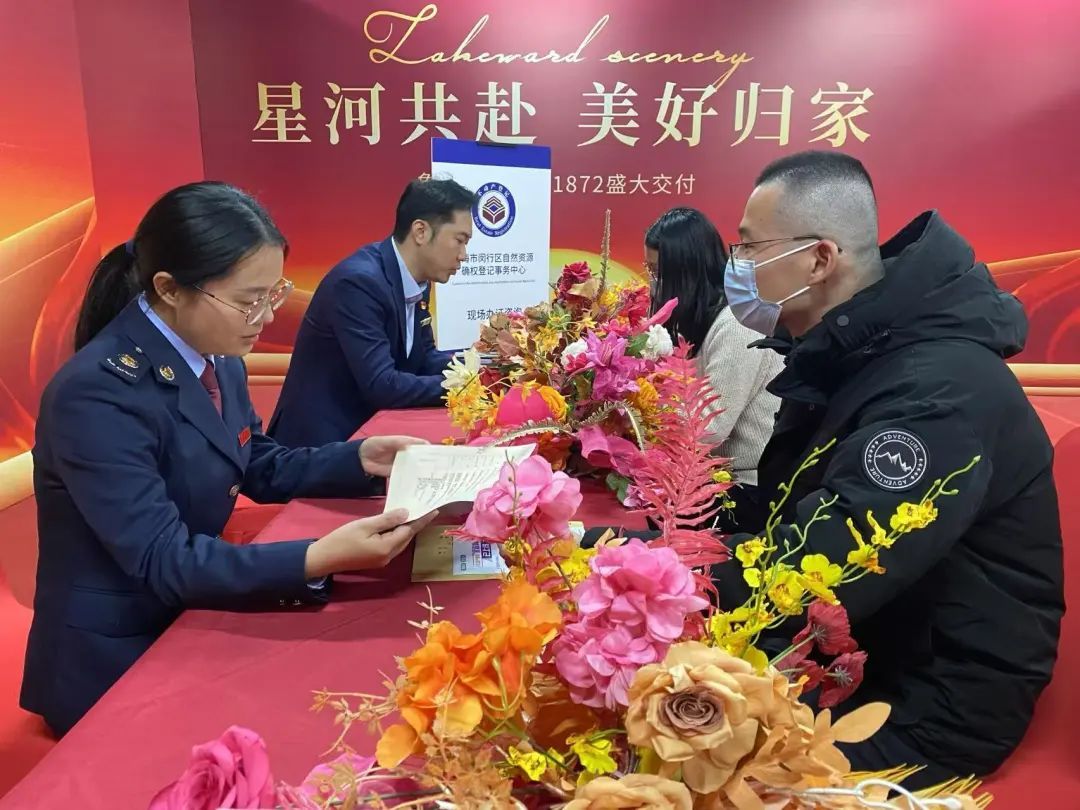 通常情况下,人们购买商品房后,需要在开发商拿到大产证后,才能去办理各种小产权证,其间往往需要较长时间。能否让市民在拿到新房钥匙的同时就拿到房产证?闵行区自然资源确权登记事务中心在对全区楼盘摸排后,决定在近期即将交付的吴泾镇璀璨雅苑楼盘试点探索。交付前,闵行区自然资源确权登记事务中心与区房地产交易中心、区税务局第三税务所等多部门协作联动,将不动产业主权属信息、交易信息和税务缴纳数据进行实时共享和同步审核,实现了新建商品住宅办证流程的增效提速,将以往可能需几周甚至数月的时间缩减至即刻完成,让购房业主在开发企业交房当天享受到“一手拿钥匙、一手拿房本”的不动产登记便利。记者在现场碰到了来自山东的孙先生,孙先生的太太在华东师大就职,二人曾租住在万科青藤,两年前看中了璀璨雅苑的楼盘后果断下手。当日在拿到新房钥匙的同时他还拿到了房产证,激动之情溢于言表。从同济大学毕业后孙先生一直是集体户口,“过年之前我就可以把户口直接迁到新房子里了”!他说,虽然集体户口跟普通户口在功能上区别不大,但“这是直接落到自己家里”,这让他感觉在上海有个家了!“终于有属于自己的房子了!”在银行工作的徐小姐和先生都是新上海人,目前租住在浦江镇。手持新房产证,她也开心不已:10月底出生的二宝,本来要跟着爸爸落到公司的集体户口,这下二宝可以直接落户,读托班的大宝也可以考虑进对口的公办学校了。徐小姐说,大宝目前在民办幼儿园读托班,比公办园贵不少,早点拿到产证,每月也会节省一笔开销。闵行区自然资源确权登记中心负责人介绍,不动产权证的办理一直是广大购房家庭关注的焦点。传统流程中,业主需等待较长周期,准备多份材料并自行到相关部门往返办理手续。“交房即交证”打破了以往漫长且繁琐的办证流程,通过部门间系统信息共享、各业务环节紧密衔接,确保商品住宅在房屋交付时即具备办理不动产登记的条件,不动产登记机构提前介入并办理登记,让购房者在领取新房钥匙的同时即能领到不动产权证书。据介绍,璀璨雅苑原定交房时间为2025年6月,根据合同,预计业主拿到产证的时间为交房6个月后,也就是2025年12月左右。开发商提前交房加上“交房即交证”的实施,让孙先生、徐小姐们早日拥有家的感觉,而且子女教育等相关问题也得以提前解决。璀璨雅苑负责人介绍,业主拿到小产证的前提是开发商拿到大产证,建设部门竣工验收、规划核验等等都通过后才能拿到大产证,区里相关部门前期给了很多指导,包括资料预审等等,保证了顺利办理。虽然为压缩时间,企业多种成本都有增加,但最终业主安家落户有了更好的体验,也是企业社会责任的体现。据悉,该楼盘由央企招商蛇口及国企象屿地产联合开发,小区2024年11月25日开始交付。考虑到12月1日开始实施的房地产契税新政,闵行区自然资源确权登记中心协调了区税务部门,为购房业主节省了税费。“企业搭建服务业主和信息共享的机制,让有意愿的业主享受这个路径的便利”,闵行区规划资源局相关负责人表示,路径打通后,将便捷送给更多有需要的人。后续如有新建商品住宅交付,均可通过这种方式实现,开发企业发起,职能部门全力配合支持。交房即交证也进一步促进营商环境优化,加快推进不动产登记各项便利化改革举措落地见效。交付领证当天,由区登记、税务等部门组成的咨询团队在交房现场增设了咨询帮办服务,就购房业主在税费缴纳及产权登记等方面相关问题释政答疑,对有产证办理需求的业主提供指导帮助。