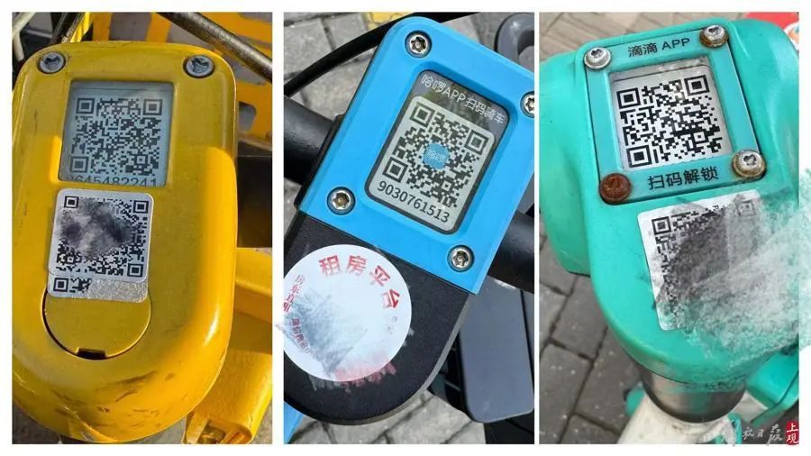 记者随即前往部分共享单车停放点调查发现,不同品牌运营的共享单车上都出现了存在两个二维码的情况。它们往往同时出现在车头,即使用者最常扫码的位置。
