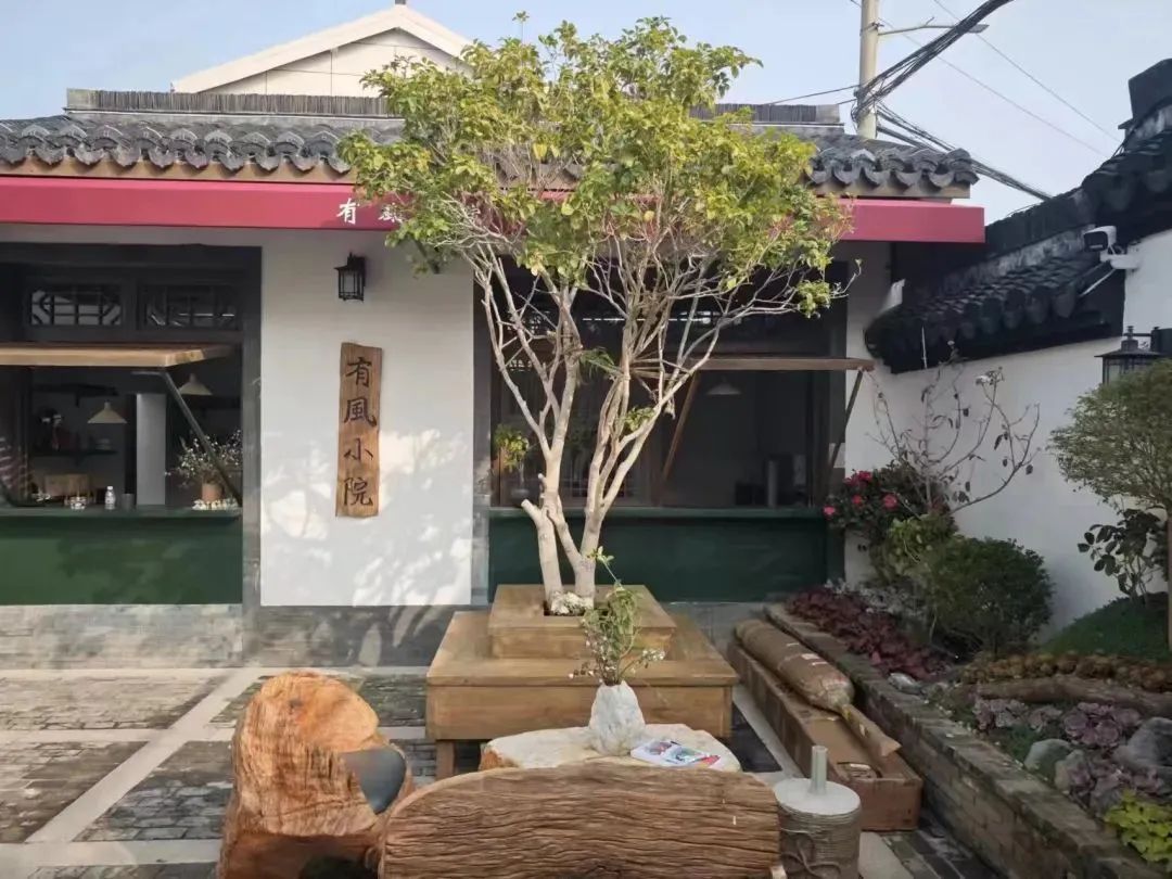 在迅建村看完锦鲤鱼,可以去隔壁的群乐村来杯咖啡下午茶。走进群乐村,迎面而来的是一大片草坪,草坪旁坐落着一个充满江南水乡韵味的院子。这里是有风小院曹路店,既是沪滇合作的成果,也是探索农文旅相结合的乡村振兴试点之一。据群乐村青年干部张羽欣介绍,这栋白墙黑瓦的楼房建于1913年,现在投入到乡村振兴当中,引进了有风小院,展示销售云南的特产和文化。