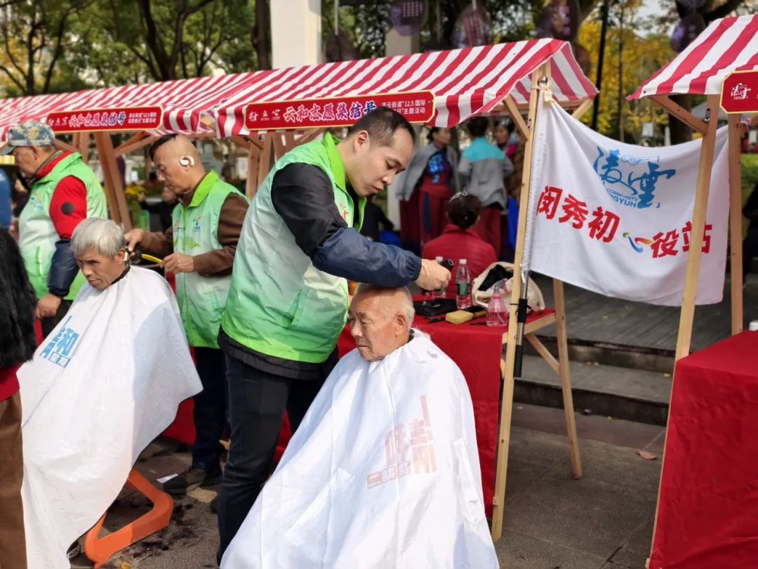 12月3日上午,徐汇区凌云街道在嘉川路小游园举行了一场国际志愿者日主题活动,将义诊检查、理发修眉、反诈宣传、报刊订阅等便民服务送到居民“家门口”,吸引了众多爷叔阿姨参与。