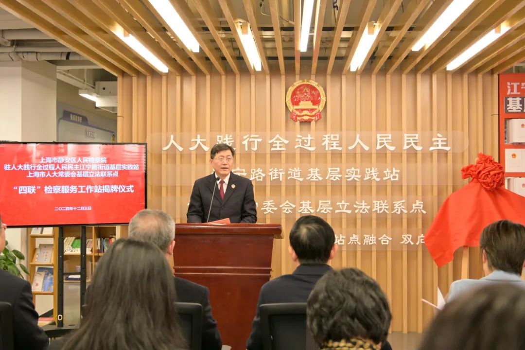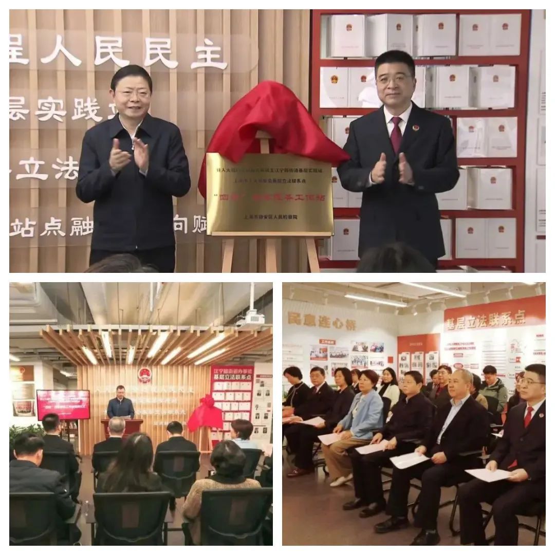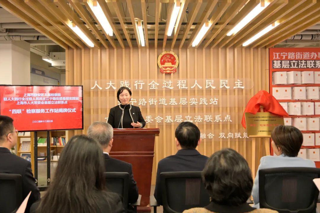 为深入践行全过程人民民主,推动“检察力量”下沉服务街道,让检察工作与人大工作同向发力、双向奔赴,12月3日下午,静安区人民检察院驻“人大践行全过程人民民主江宁路街道基层实践站”“上海市人大常委会基层立法联系点”“四联”检察服务工作站正式揭牌,并启动“静心护老”网络反诈宣传巡演活动。