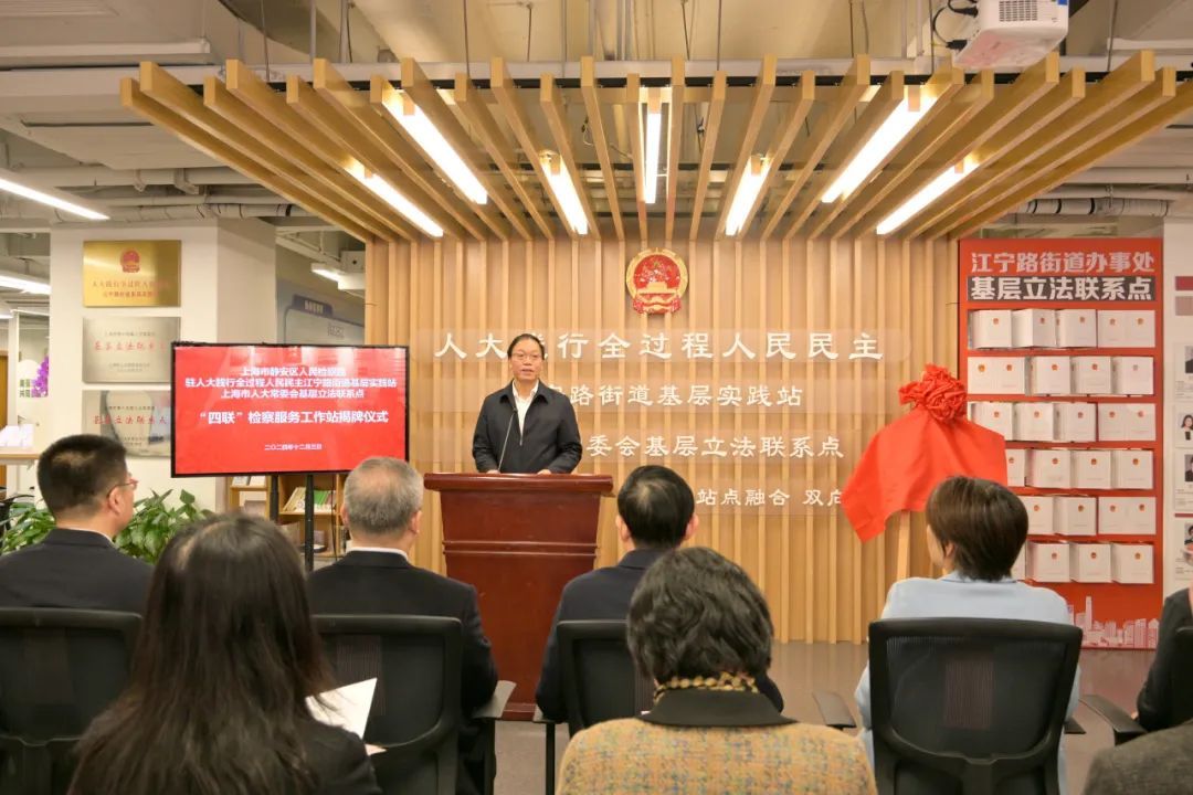 江宁路街道党工委书记、人大工委主任刘尚宝在致辞中表示,按照市、区人大打造“全过程人民民主最佳实践地”总体部署,用好“基层实践站”“基层立法联系点”两个平台,探索“站点融合、双向赋能”工作机制,以“四联”检察服务工作站的设立为新的起点,拓展新内涵、增添新动能,推动江宁路街道人大工作、立法工作和基层治理工作实现新的发展、展现新的风貌。