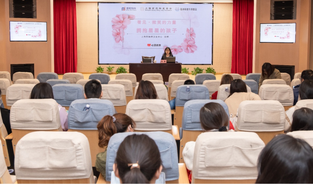 主题活动结束后,上海宋庆龄基金会嘉靖慈善专项基金与区教育局携手组织开展了一场心理健康知识公益讲座,邀请上海市精神卫生中心少儿科主治医师张桦以“拥抱‘星星’的孩子”为主题,为与自闭症儿童结对帮扶的“青椒”志愿者,以及区内特殊教育学校的教师和家长作专题辅导,帮助大家更好地了解自闭症群体的临床表现、病因诊断等,并就如何与“星星”的孩子沟通交流、进行早期干预等给出了专业的指导建议。