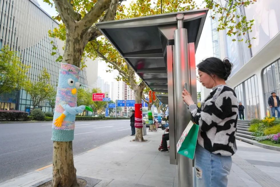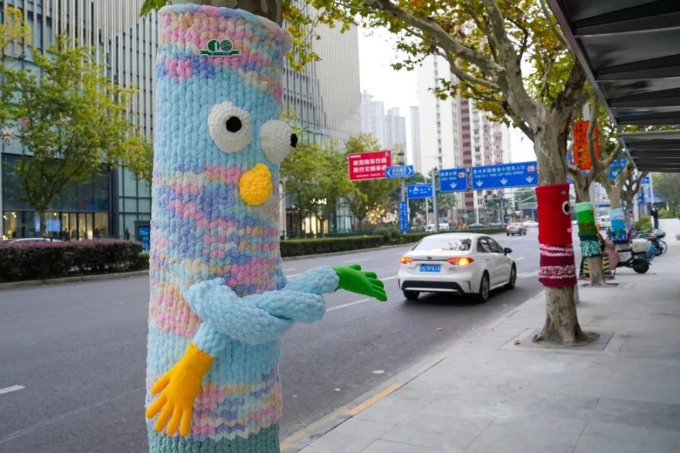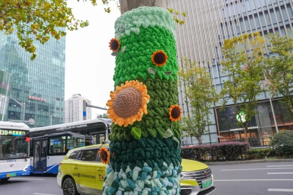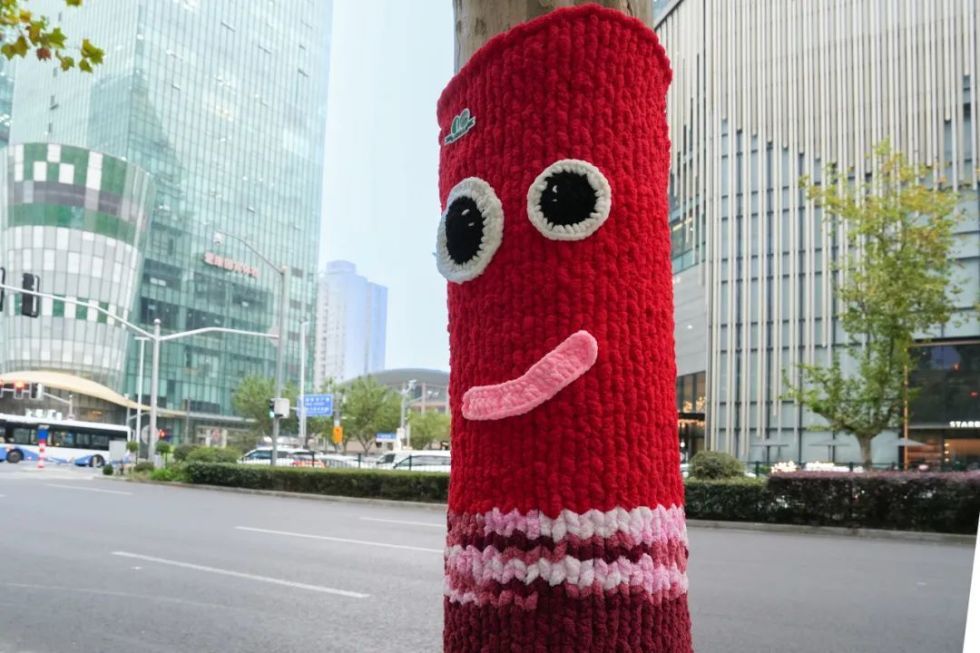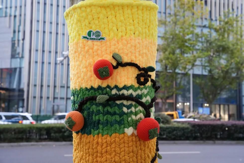 “穿上”亮丽毛衣的大树点缀街道,连接起人与自然、艺术与生活,让城市充满温情。