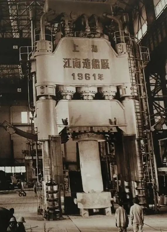 上海江南造船厂和上海重型机器厂研制的中国第一台万吨水压机