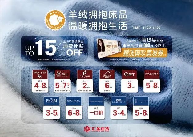作为首批参加家纺补贴范围的线下百货,汇金百货积极响应政府号召,各门店共有3个大类、31个品牌供应商共同参加此次家纺补贴活动。为了最大化地让利给消费者,商场还与各品牌商协商推出了额外的促销活动,力求为顾客创造更加实惠的购物环境。