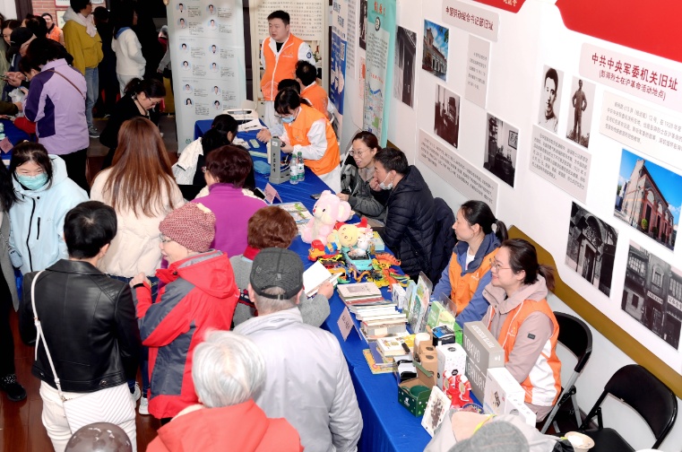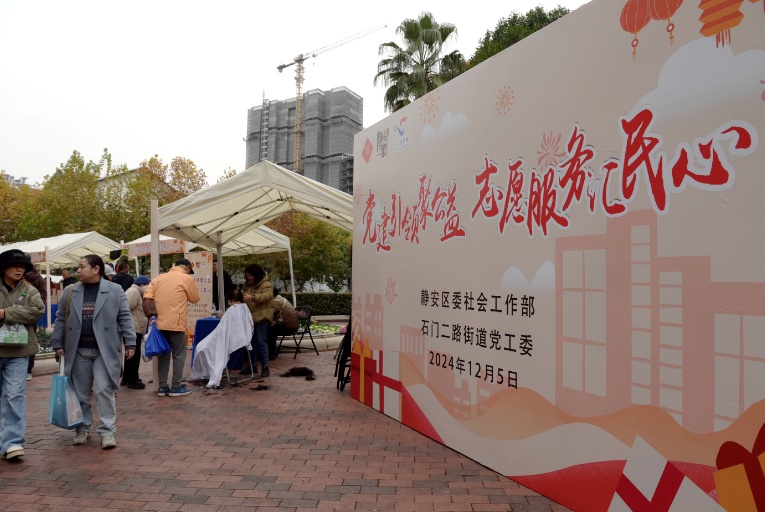 活动外场由区委社会工作部、石门二路街道党工委联合主办的“党建引领聚公益 志愿服务汇民心”公益市集同步开展。集市共计有60家来自沿街商铺、楼宇企业和区域化党建单位参与,内容涵盖食品试吃、咖啡券赠送、中医养生、口腔义诊、免费维修、服饰售卖、政策咨询等,吸引了众多的社区居民、企业白领、新就业群体代表等前来“赶集”。