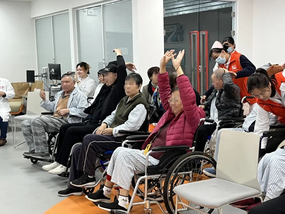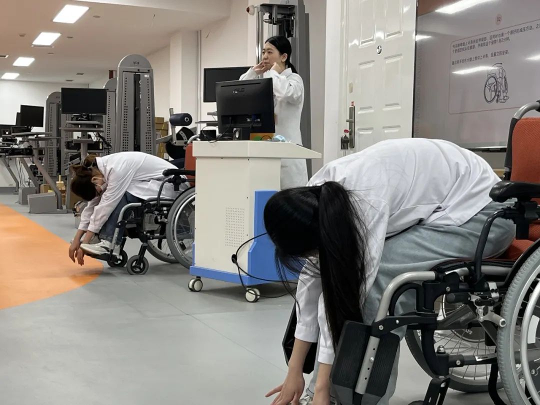 在轮椅操作训练环节,治疗师联同两位实习同学现场演示了简单实用的“减压、拉伸操”,让患者通过亲身体验,掌握了更多轮椅操作技巧和锻炼方法,同时增进了彼此间的交流与理解。