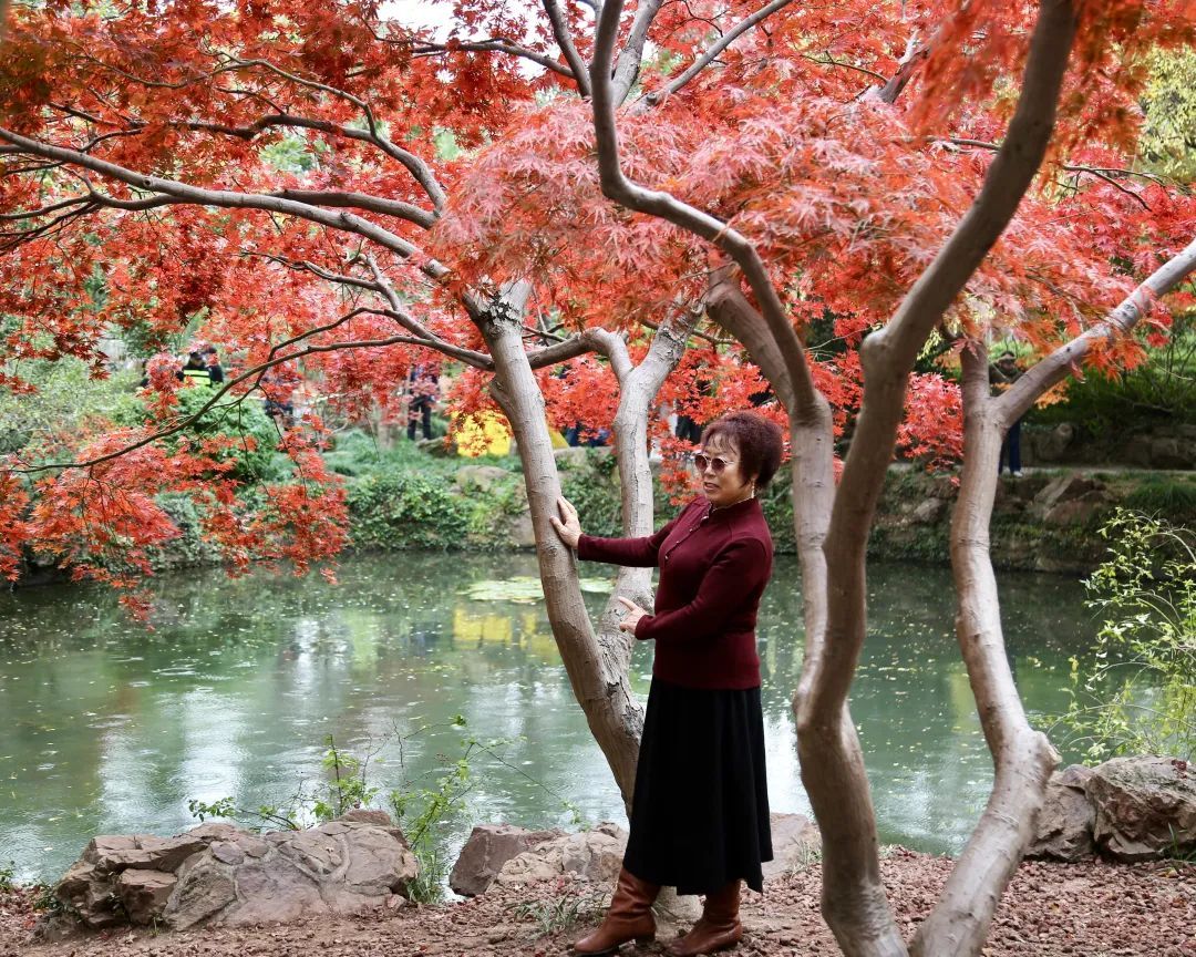 12月5日一早,记者在秋霞圃看到,游客们漫步在园中小径上,沉浸于冬日枫红的美景中。临近大雪节气,万物渐趋寂静,而这里的枫叶却红得热烈。在冷空气的洗礼下,枫叶褪去了青翠,换上炽烈的火红。一树树红枫如花火般绽放,绚烂而温暖,美不胜收。