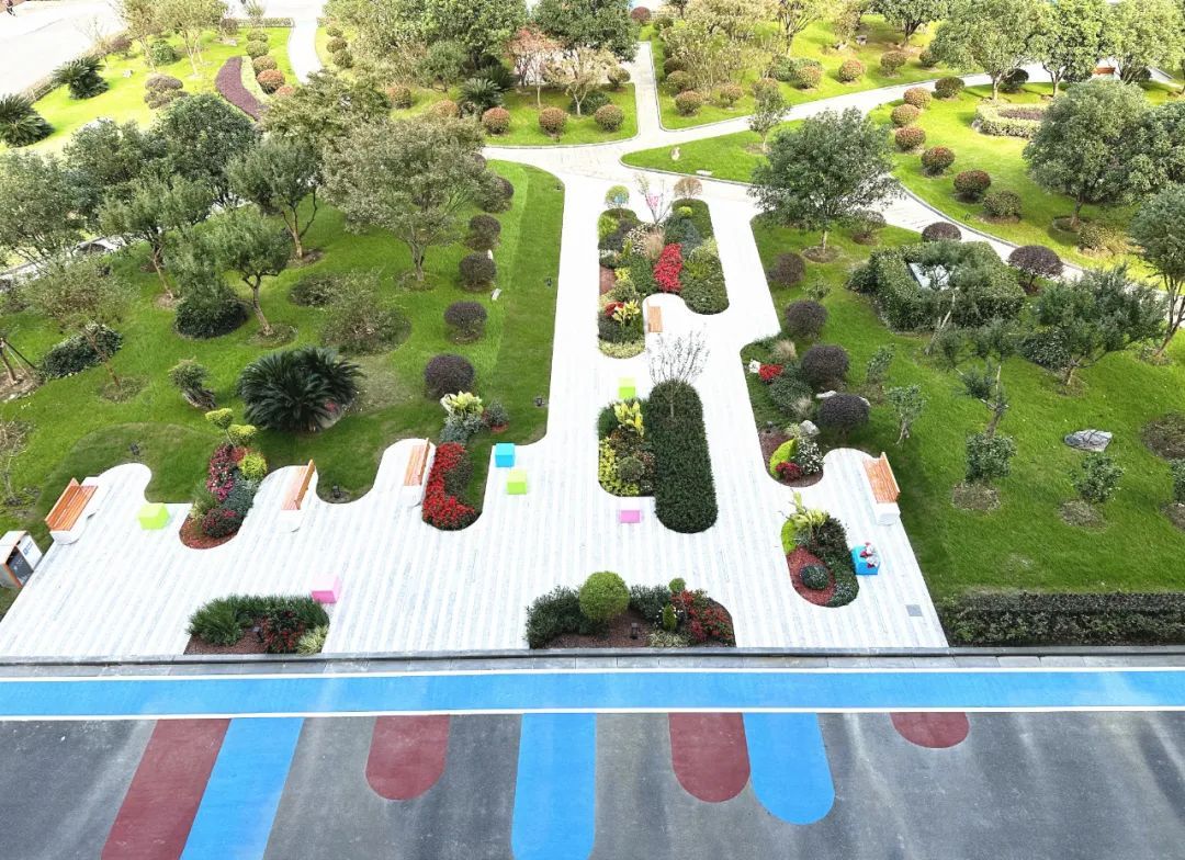 园内色彩丰富,增加了开花观色地被植物和开花乔木,假山跌水保持不变,绿化、花箱、标识、照明系统等城市家具进行了全面提升更换。园内还增加了多组艺术造型座椅、艺术趣味座椅及艺术小品等,在全面翻新中各个节点被巧妙地串联起来。