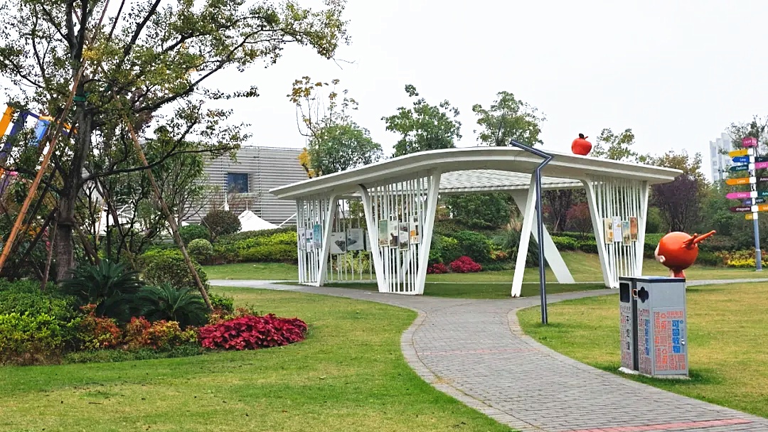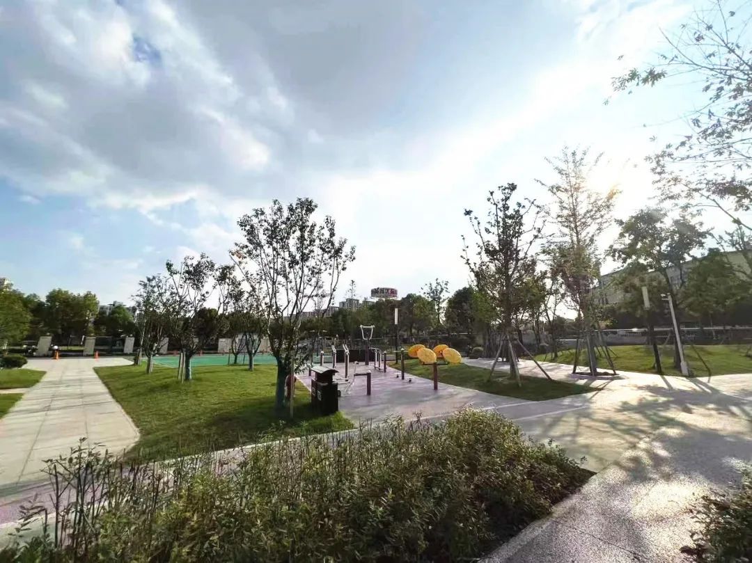 绿地采用开放式设计,有三个主要入口。绿地的整体布局结构经过科学规划,确保空间的合理分配和功能的多样性。绿地内植物种类丰富,确保绿地四季的景观效果。植物合理搭配,有助于净化空气,提供遮阴以及吸引各类鸟类和昆虫,为提升生态多样性创造条件。
