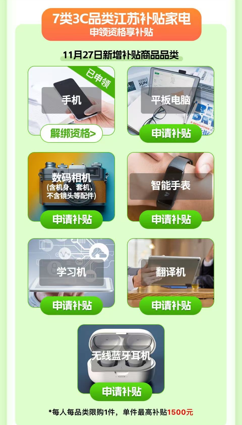 3C品类江苏补贴家电