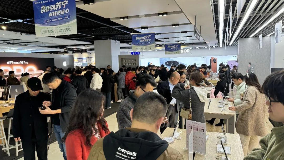 12月3日,正在苏宁易购八方汇门店等待提货的张先生兴奋地分享着自己的购买经历:“这次活动的补贴力度比‘双十一’还大,直接便宜1500元,旧手机也能抵钱,果断拿下!”