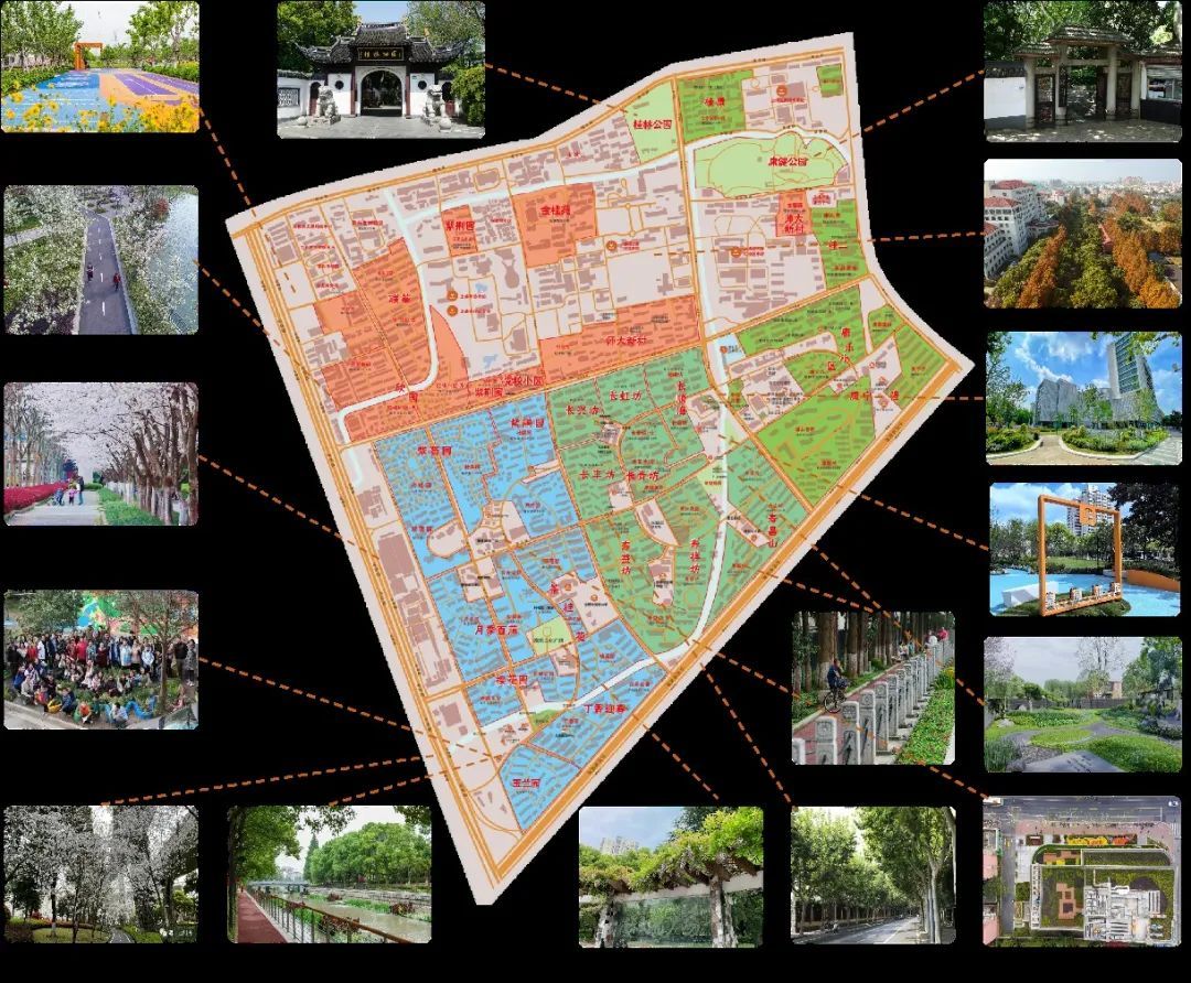 先后完成桂林东街、桂林西街、虹漕南路等美丽街区景观提升工程,打造集生态绿化、运动健身、文化艺术于一体的特色街区,推动园林、文化、体育融合发展。