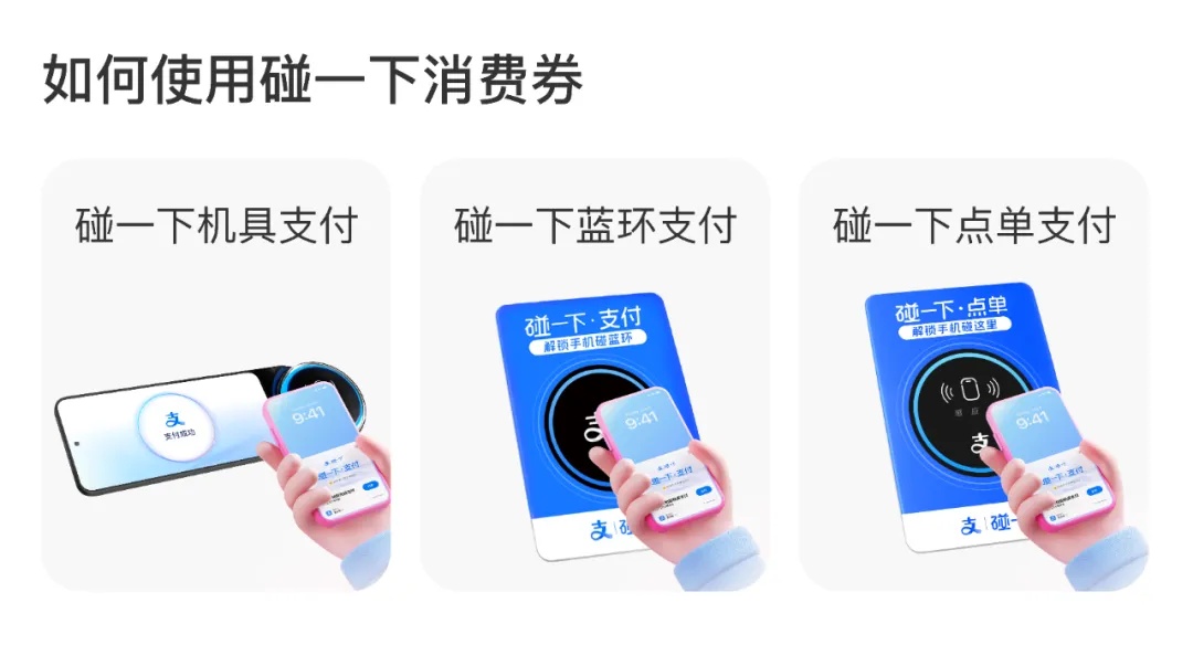 近日,支付宝联合各地政府和商家启动“碰一下消费节”,在全国百城持续开展促消费活动。包括了“碰一下”支付优惠、免单、集卡换礼。并在上海、广州、重庆、成都、杭州、郑州、长沙、武汉、青岛、西安、沈阳、厦门、苏州、南京、合肥、济南、哈尔滨17个城市发放“碰一下消费券”。