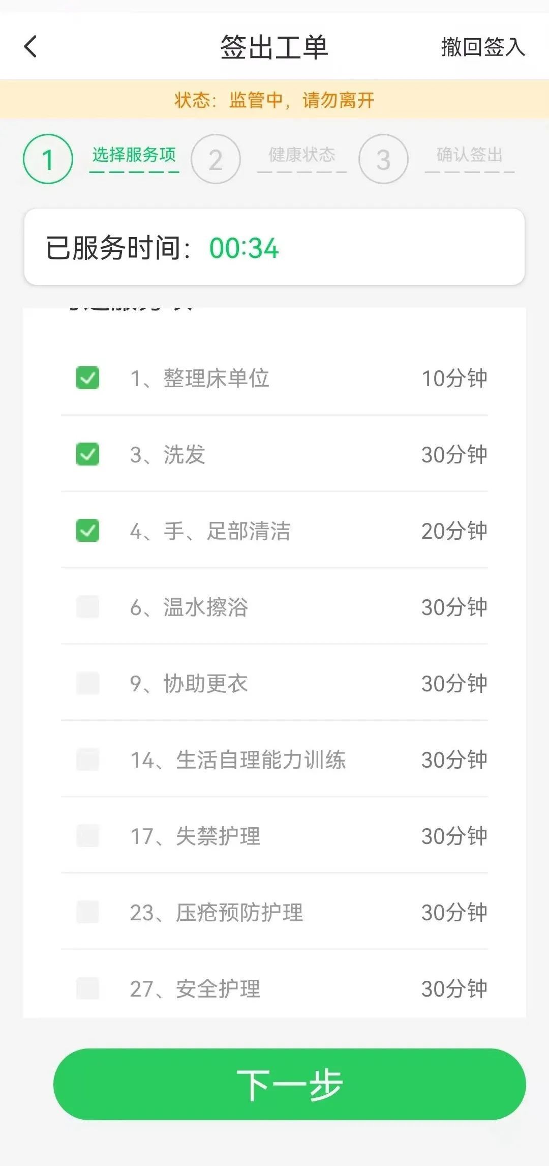 从去年开始,在静安享受长护险服务,除了基本服务内容外,还可叠加体温、脉搏、血压、血氧等体征数据免费检测服务。这些体征数据和服务情况以“免申即享”的形式,通过“随申办”等政务平台推送给老人及其家属。同时,在后端,还能通过静安长护险服务平台进行全程智能监管,有效把控服务质量。