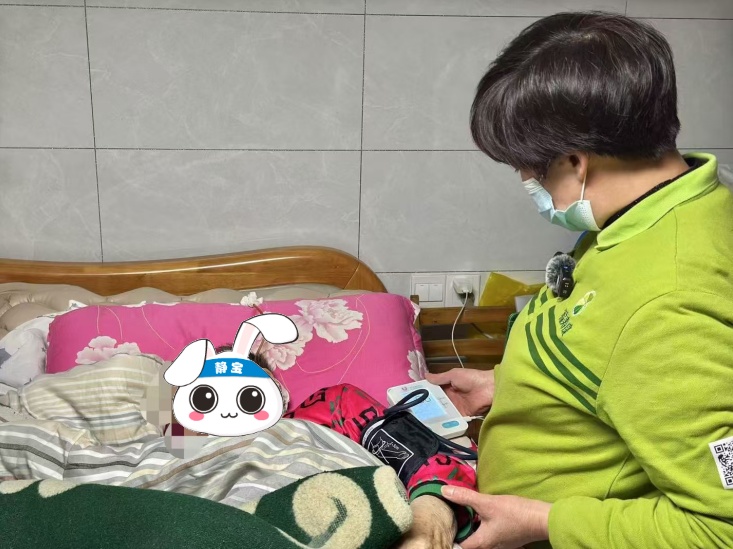这几年,来自福寿康静彭护理站的护理员张世莲定期上门服务,每天服务1小时,给老人翻身、擦身、洗漱、消炎、按摩、更换导尿管等。张烨发现,去年开始,护理员每次来时都会随身携带具备蓝牙数据传输功能的生命体征检测设备,每次开始服务前先给老人测量体温、脉搏、血压、血氧等。