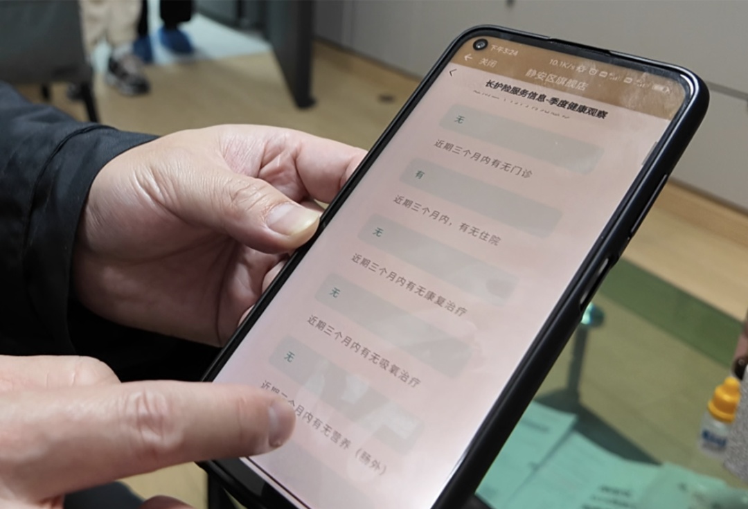 现在,通过手机端“随申办”静安旗舰店的“长护险服务信息推送”小程序和静安区医保局“静心办、码上查”政务微信小程序,就可以查到护理员测量的这些老人体征信息、当天上门服务的信息等。