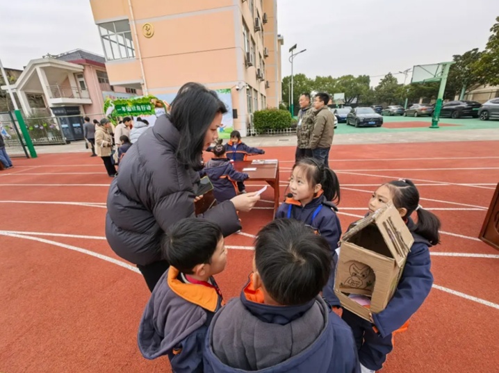 一年级的识鸟行动别出心裁地设置了“勇闯三关”环节,萌娃们兴致高昂,踊跃参与其中。二年级的知鸟行动则巧妙借助看视频竞猜、答题赢奖品的形式,吸引了不少来宾参与互动。三年级的护鸟行动更是创意爆棚,学生们对课本剧《天鹅的故事》的精彩演绎入木三分,引得来宾们纷纷发出由衷的赞叹。在四年级的研鸟行动中,孩子们自信满满地介绍小课题,展示研鸟成果,将创意自然笔记与书签、扇子巧妙融合。在五年级的赏鸟行动中,学生们制作并吹响鸟哨,清脆悦耳的哨音仿佛林间鸟鸣。