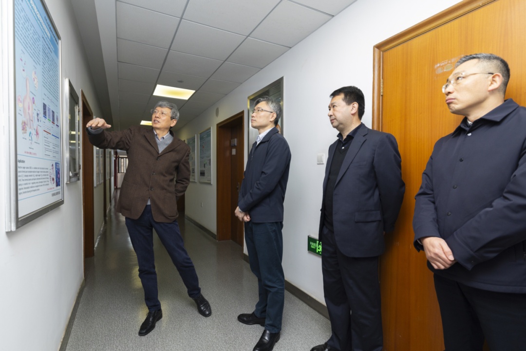 调研中,骆大进一行实地参观该所介孔与低维纳米材料实验室,听取了研究所创新发展的情况介绍,了解该所围绕我国重点产业发展材料需求和材料领域全球科技前沿开展的平台、项目和人才一体化推进建设情况。