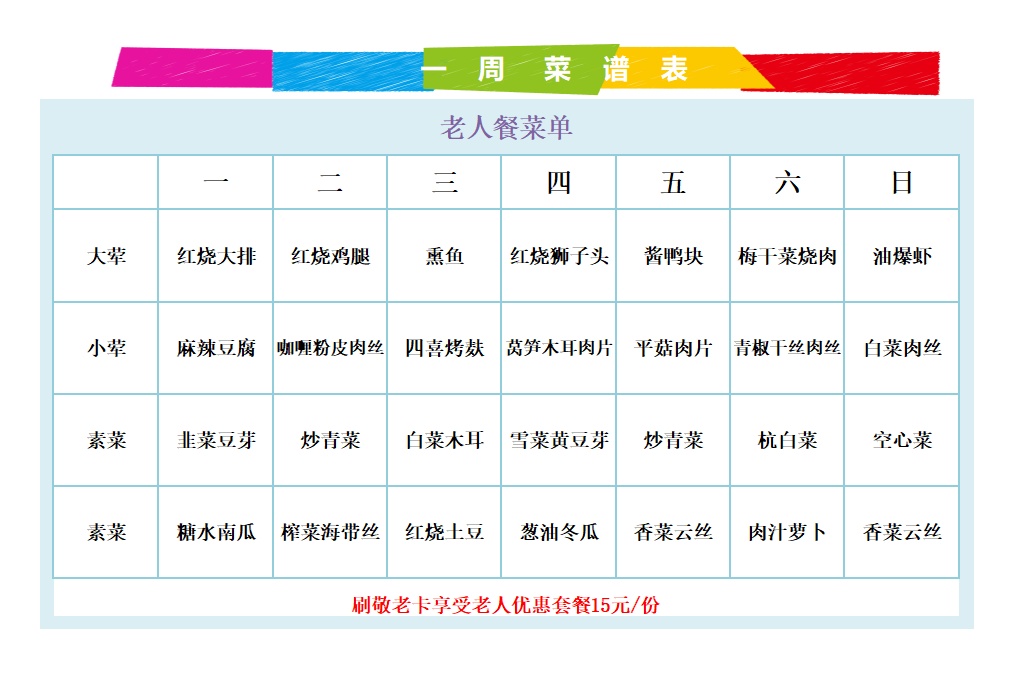 红烧狮子头、莴笋木耳肉片、雪菜黄豆芽、葱油冬瓜……上午11时,张师傅刚准备好菜品,已等了一会儿的居民们就围了上来。记者了解到,窗口提供20余种菜品,每天不重样,“一周菜单”周周更新。除了一大荤、一小荤、两个素菜之外,食堂还提供免费的白米饭和汤品,让老年居民在家门口就能吃到丰盛实惠的餐食。“后续我们还会根据大家的意见研发新菜品,结合居民的口味喜好,带来更多的美味。”食堂负责人说道。