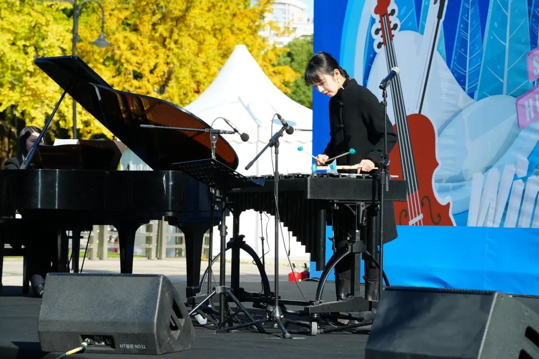 城市草坪音乐广场上,微风轻拂,银杏叶沙沙作响,仿佛在为即将奏响的音乐轻声吟唱。青年打击乐演奏家、音乐与哲学跨学科博士、上海师范大学与上海戏剧学院的青年教师荣辰初,与著名爵士歌唱家陈胤希,共同演绎出一场如梦如幻的当代爵士乐音乐会。那音符恰似灵动的精灵,在银杏林间穿梭嬉戏,时而激昂,时而舒缓,引得台下观众如痴如醉。
