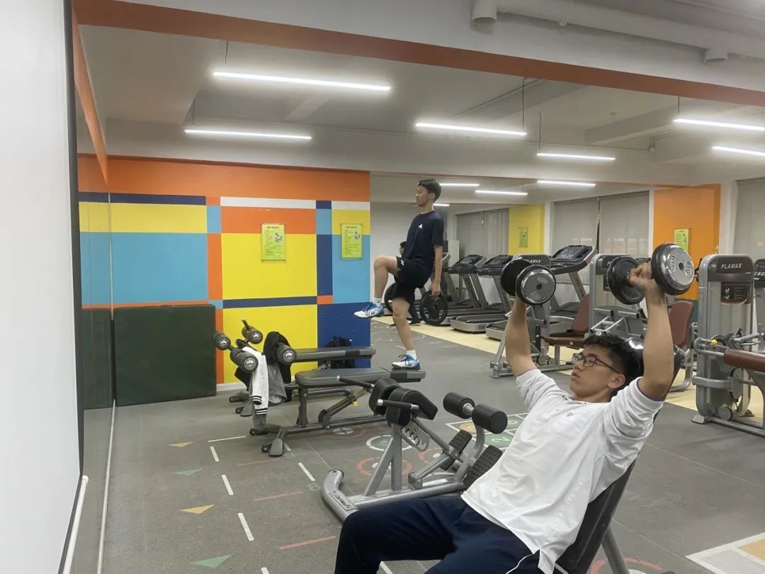而学校的体能教室,则是另一番充满活力的景象。这里采用鲜艳的色彩和文字图案装饰,让学生眼前一亮,跃跃欲试。体能教室分为自由力量区域、固定力量区域、有氧练习区域和拉伸放松区域,配备专业的指导教师,充分满足学生的运动热情和需求。