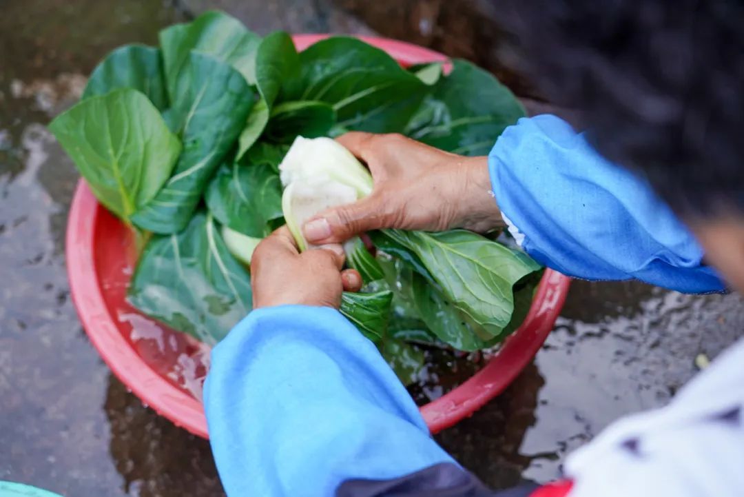 挑选嫩一点的青菜叶,