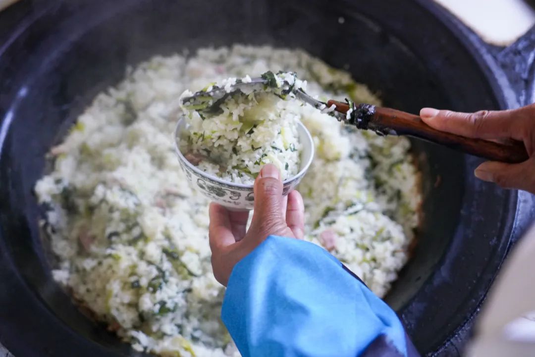 杨阿姨说:“青菜、咸肉、新米一起,