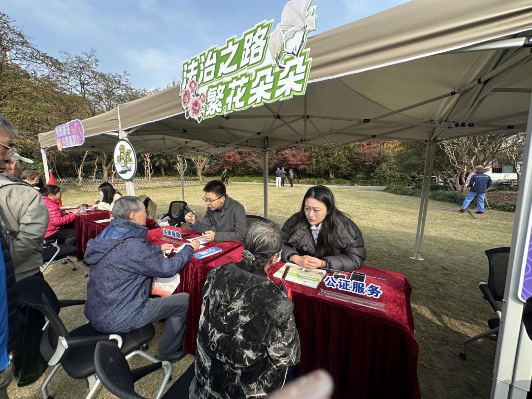 活动现场,长桥街道联合律师事务所、“甘棠树下”社区法官工作室、区法援中心、徐汇公证处等部门为辖区内居民提供法律咨询服务。