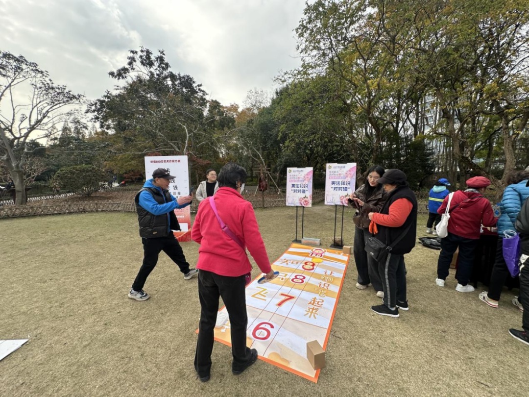 精彩的法治游园会也吸引着社区居民的目光。居民朋友积极参与宪法知识“对对碰”互动游戏,解开一个个法律知识谜题。此次法治游园会将普法宣传与游戏互动巧妙结合,于游戏中让居民们接受法律知识教育,提升学法知法懂法的意识水平。