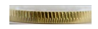 硬币外缘分布有交替排列的斜全齿与半齿。防伪特征效果见图2。