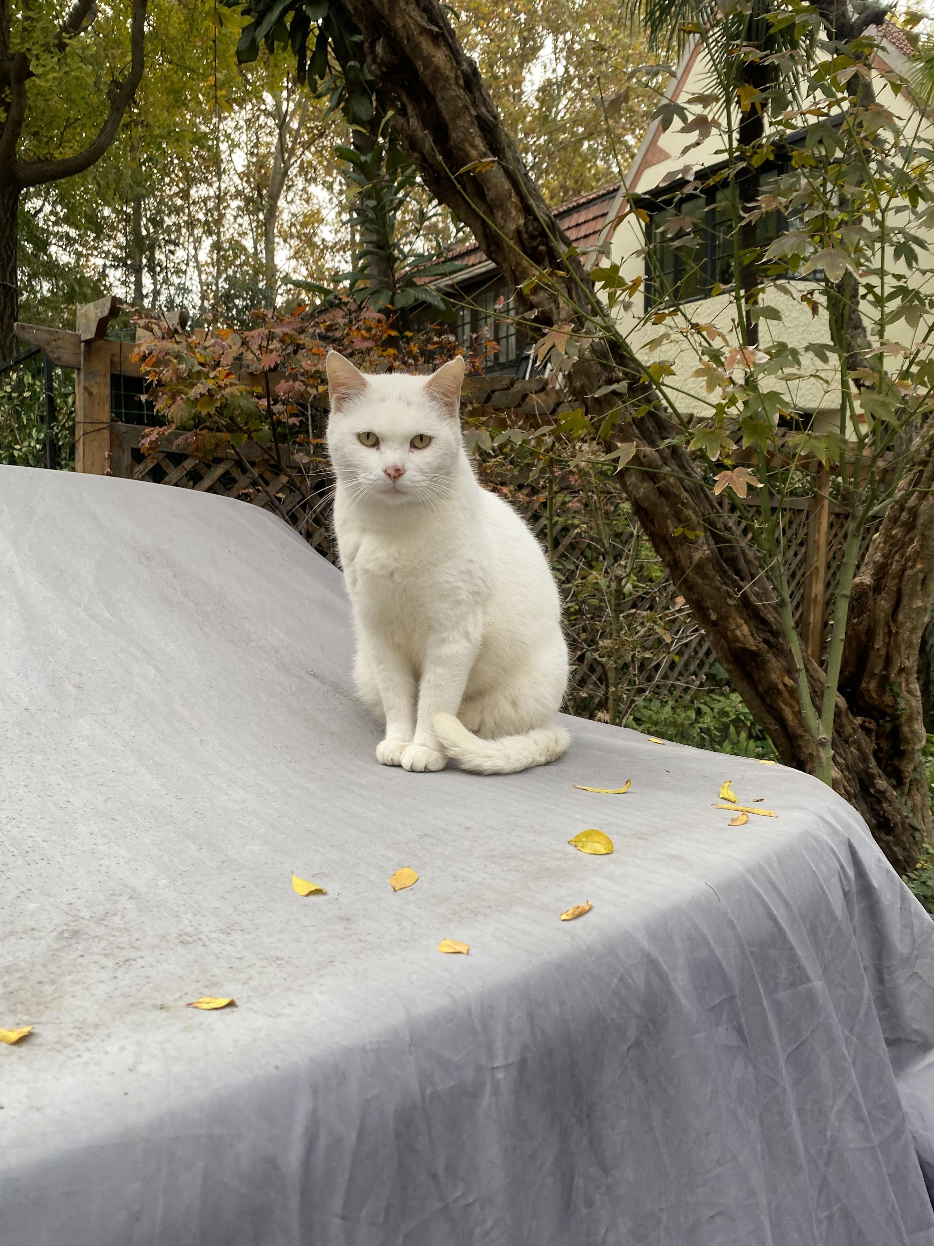 金黄色的银杏雨时不时地旋转飞舞,信步在小路间的喵星人是傲娇且有个性的。不给吃的就不给摸头。