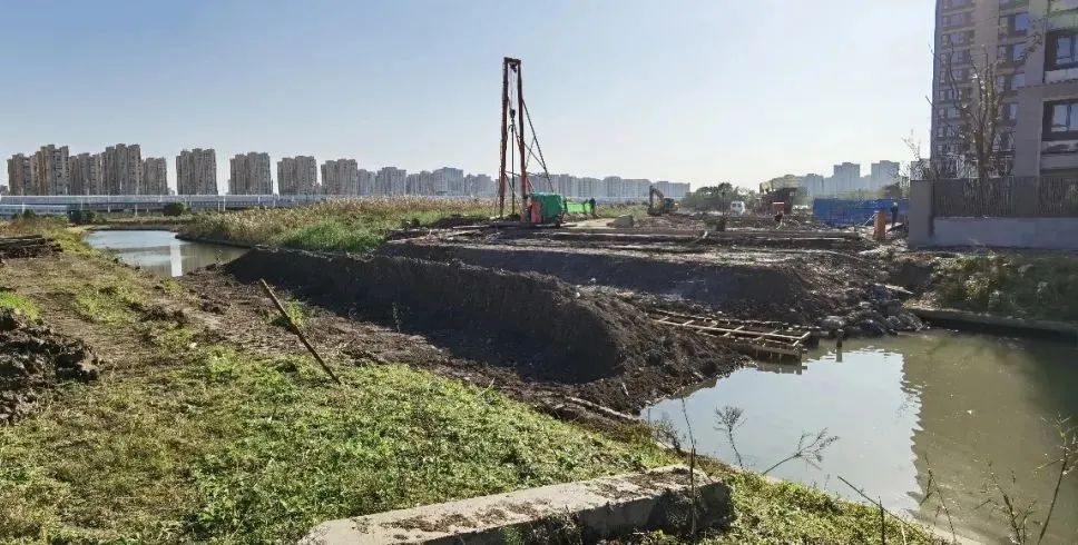 “目前项目清表工作已完成,准备排管作业。两座桥梁中的牛桥泾桥正在浇筑桥墩,北张泾桥围堰施工已经完成,正在打桥桩。项目计划2026年上半年竣工。”施工方现场主管曹军介绍。