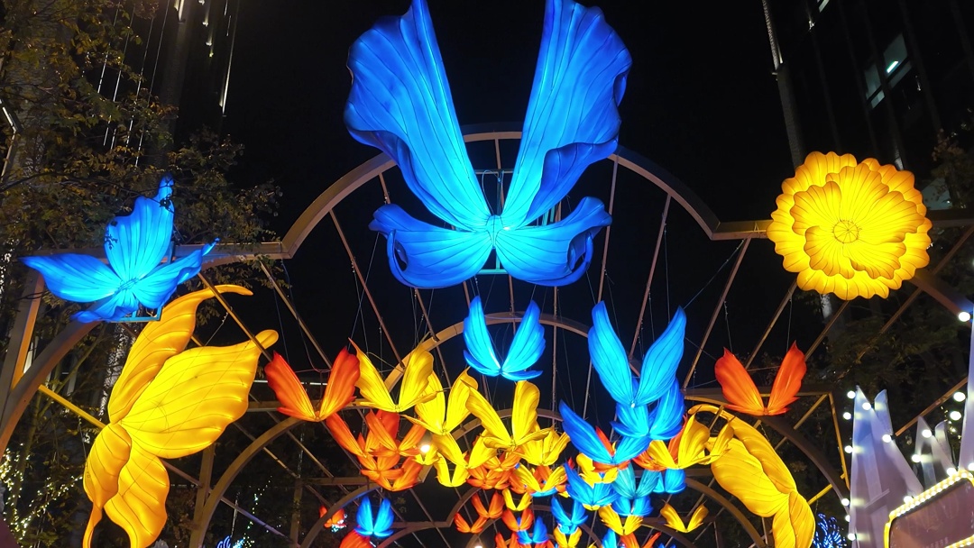 在外滩BFC,哈利·波特的世界精彩纷呈,而东方浪漫故事也同样完美演绎,12月8日晚,BFC率先揭开“庄周梦蝶”跨街灯饰的神秘面纱,与豫园凝晖路同款蝴蝶花灯串联起大豫园的璀璨星河。枫泾路上,彩蝶翩跹,织就一幅炫彩夺目的东方美学画卷。灯彩起点,巨型彩蝶翩然展翅,引领蝶群共舞天际,奔赴未来的美好诗篇。在不久的将来,这些翩然起舞的蝴蝶将与豫园灯会的“山海奇豫记”共同交织成一幅唯美图景,为游客们献上一场视觉与文化的盛宴。