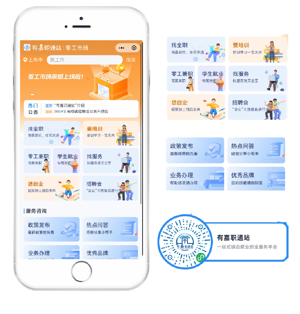 除了解决企业留人的难题外,居民就业需求的多样性也备受关注。为此,南翔镇还打造了一站式公共就业服务平台——“有嘉职通站”,涵盖了政策咨询、创业指导、技能培训、求职应聘等多项功能。