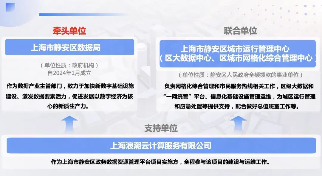 静安区“数据要素促进城市治理效率提升”项目,以区政务数据资源管理平台为基础,全面推进数据目录、数据资源、数据共享一体化建设。