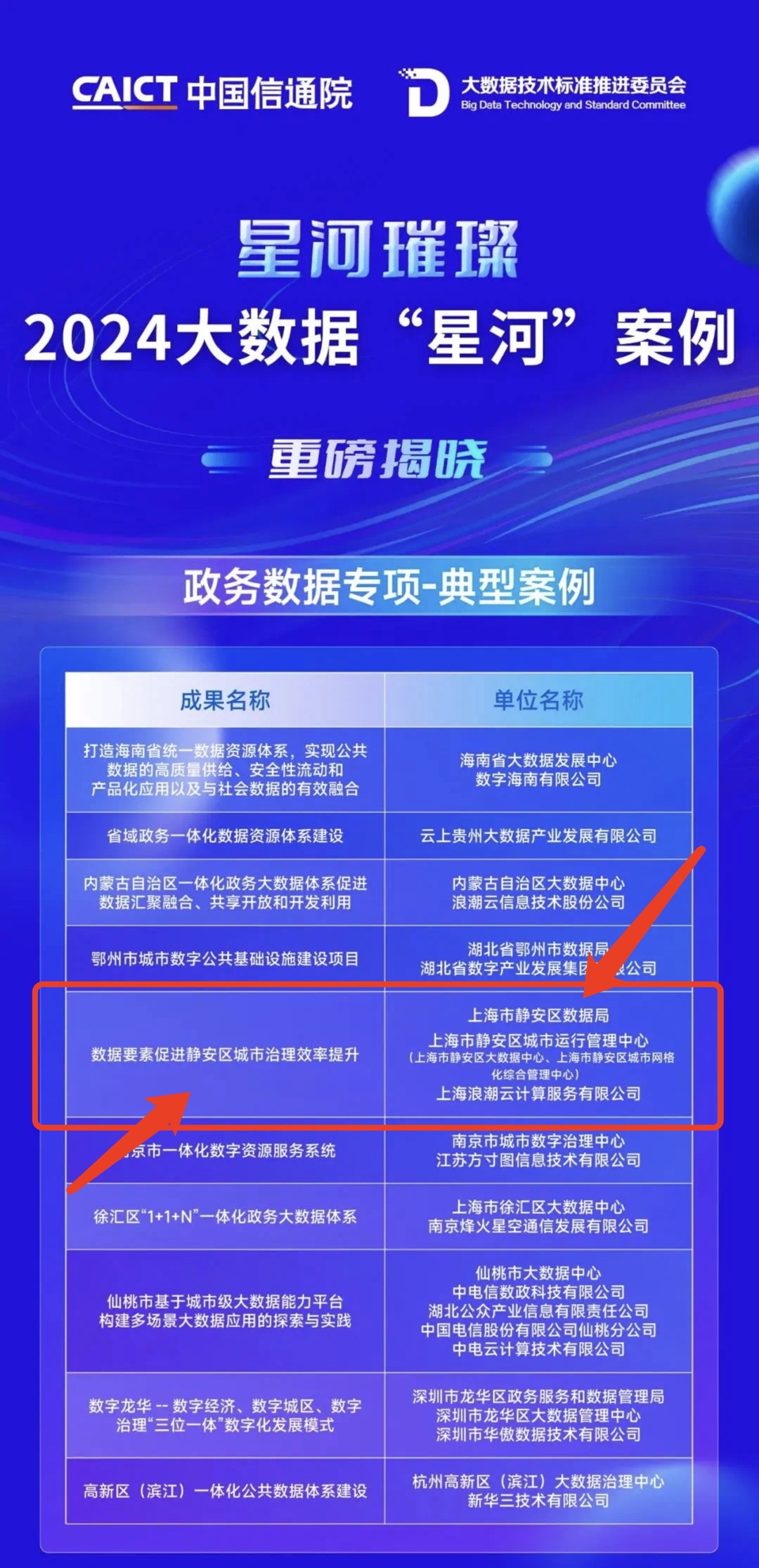 近日,备受瞩目的大数据领域盛事——2024大数据“星河”案例评选结果重磅揭晓。静安区数据局申报的“数据要素促进静安区城市治理效率提升”项目脱颖而出,获评政务数据专项“典型案例”。
