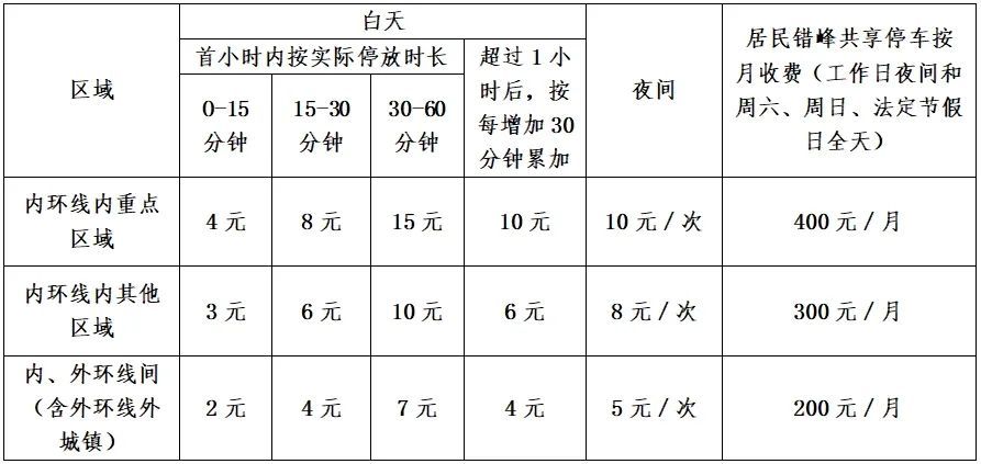 注:1.有关白天和夜间的具体时段以道路停车收费标志牌公示的时段信息为准;