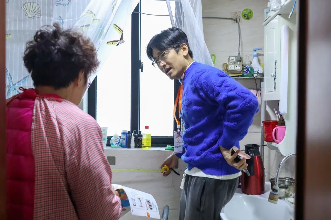 关注老人需求外,老人身边照护者的诉求和建议也同样重要。有一回,马庆阳为认知障碍老人家庭选择马桶盖款式时,依照经验挑了黄色。老人家属却表示反对。对方表示,照顾家人已身心俱疲,只希望“改造之后,家还是原来的模样”。反复比较考证,她最终选择了标识贴,既帮助老人记忆分区功能,也让家属感到积极的心理暗示,在繁重的照护压力下有了喘息空间。