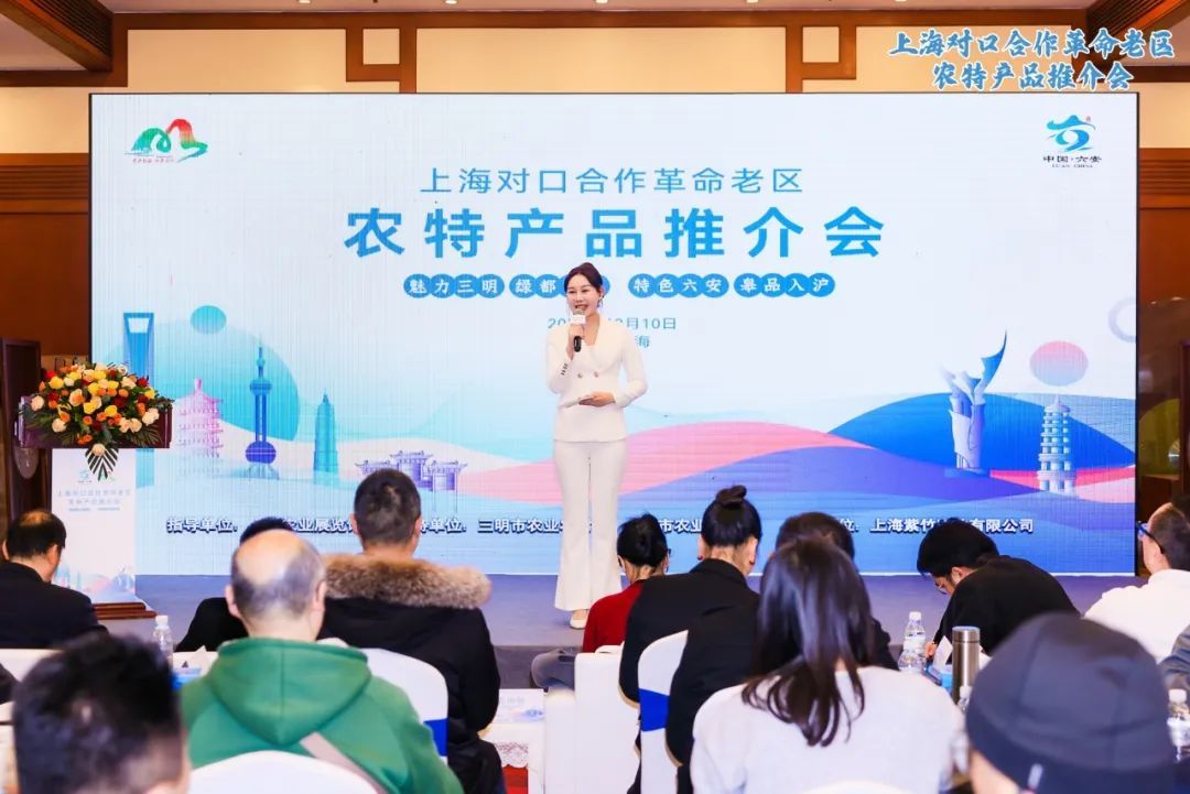 会上,“魅力三明 绿都明品”“特色六安 皋品入沪”两场主题推介举行。两地革命老区企业代表上台讲解特产农产品背后的故事,通过现场交流,让渠道商在体验到这些农产品的品质和风味的同时,了解其背后的故事和文化,增强对革命老区地区发展的认知和支持。