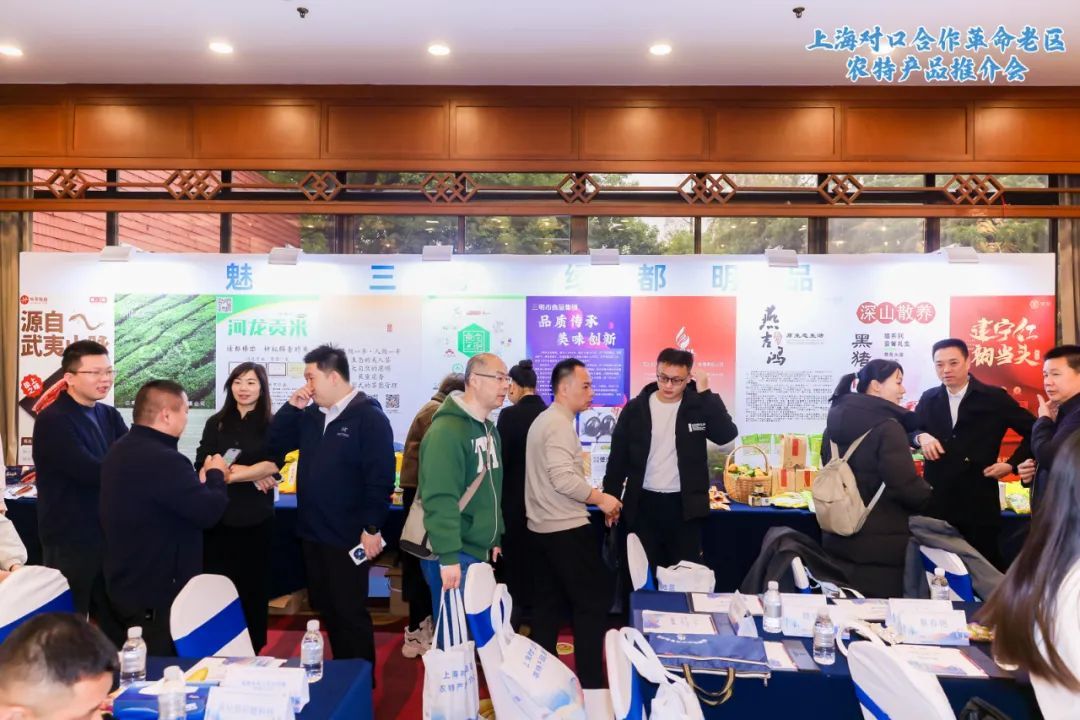 12月10日,上海对口合作革命老区农特产品推介会在上海举行。来自福建省三明市、安徽省六安市的17家企业、合作社带来了近百款优质农特产品,与30家专业渠道商代表现场交流、宣传推介。本次活动旨在推动上海与革命老区的对口合作走深走实,深化消费帮扶,进行精准对接,充分发挥上海大市场、大流通、大平台优势,以产品带动产业,不断扩大对口地区农特产品等项目联动的市场影响力。