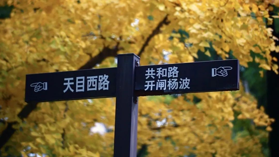 常德路(延安中路—北京西路)的130余株银杏笔挺地立在道路两旁,用纯粹的金黄笔触,勾勒出城市的轮廓。微风拂动,黄金色的叶片簌簌而落,似蝴蝶翩跹。