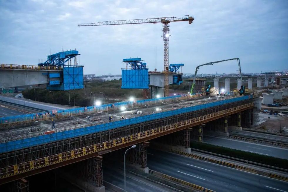 记者从中国铁路上海局集团有限公司获悉,12月10日,沪苏通铁路太仓至四团段控制性工程——惠南特大桥跨S32申嘉湖高速96米系杆拱梁体系梁顺利浇筑完成,为后续架梁铺轨奠定了坚实的基础。