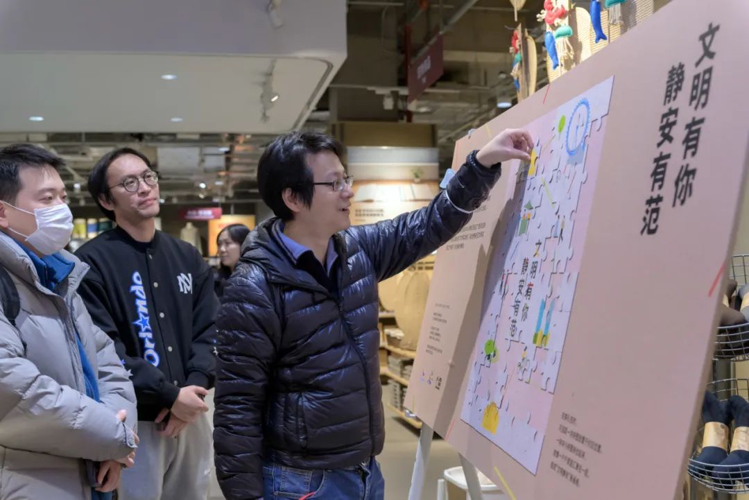 12月10日,“描绘你心目中的理想城区”静安区文明实践快闪活动在无印良品MOHO Mall门店内举行。参加快闪活动的文明实践工作者们纷纷拿起笔写下对“理想城区”的期待和美好祝愿。