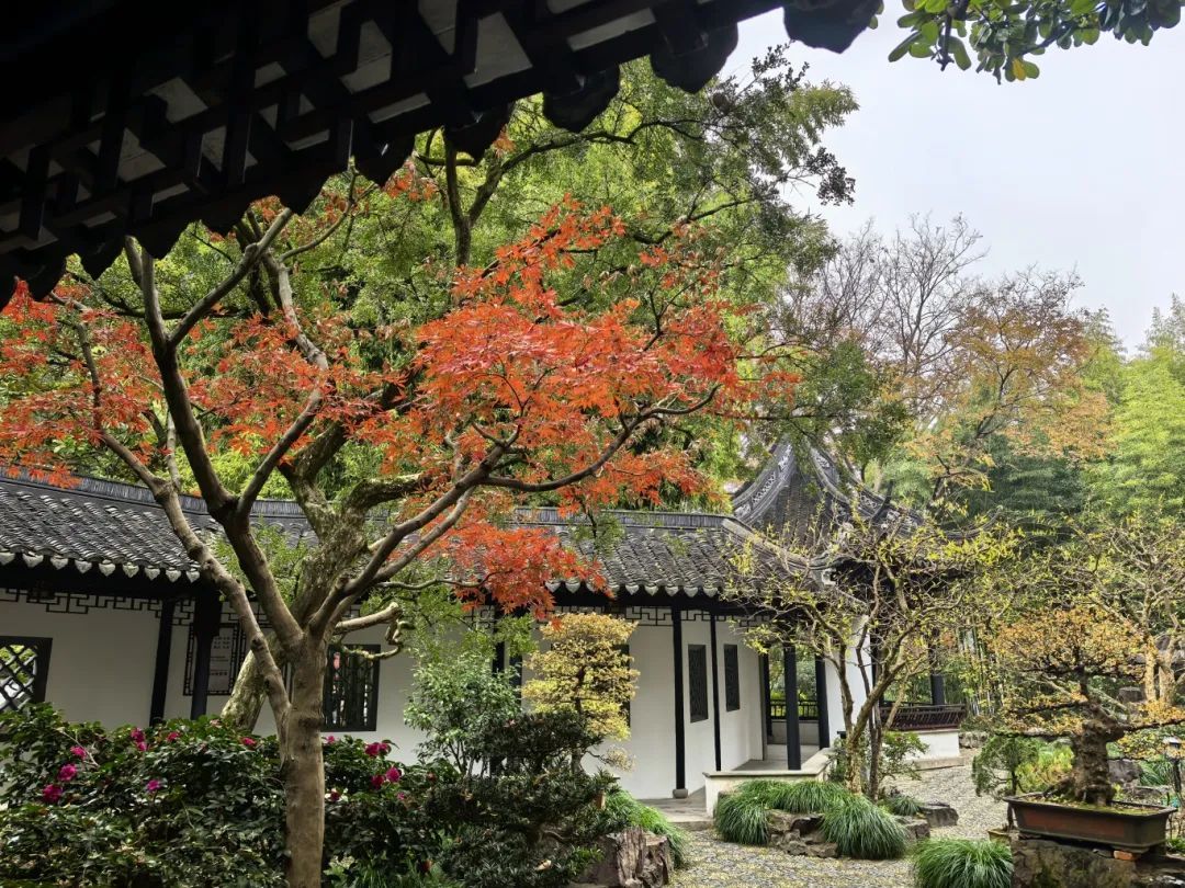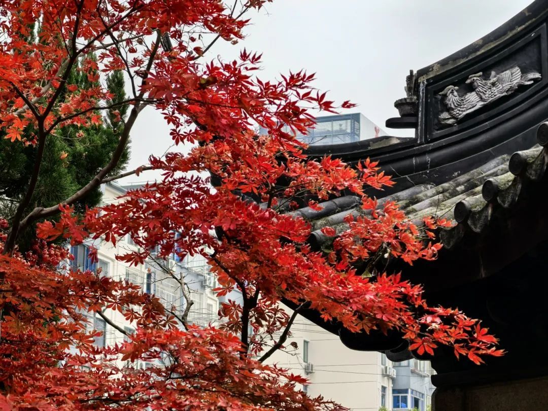“山远天高烟水寒,相思枫叶丹”,南唐诗人李煜将思念比作枫叶,如火焰般浓烈。这几日,随着气温逐渐降低,上海曲水园的枫叶渐渐披上“红装”,迎来了最佳观赏期,为古典园林增添了几分诗意与浪漫。