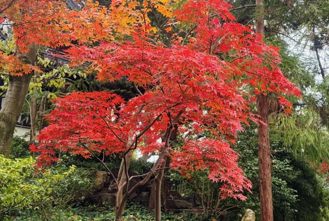 红枫在上海被广泛种植于公园、景区以及街头的绿化带。12月初,随着天气转冷,红枫陆续进入最佳观赏期。红枫的叶片从绿色逐渐过渡为橙红、深红乃至紫红,色彩斑斓,极具层次感。微雨过后,枫叶被洗净了尘土,色泽更加鲜亮。在这样美丽的时节,不妨来曲水园,感受枫叶红的魅力吧!