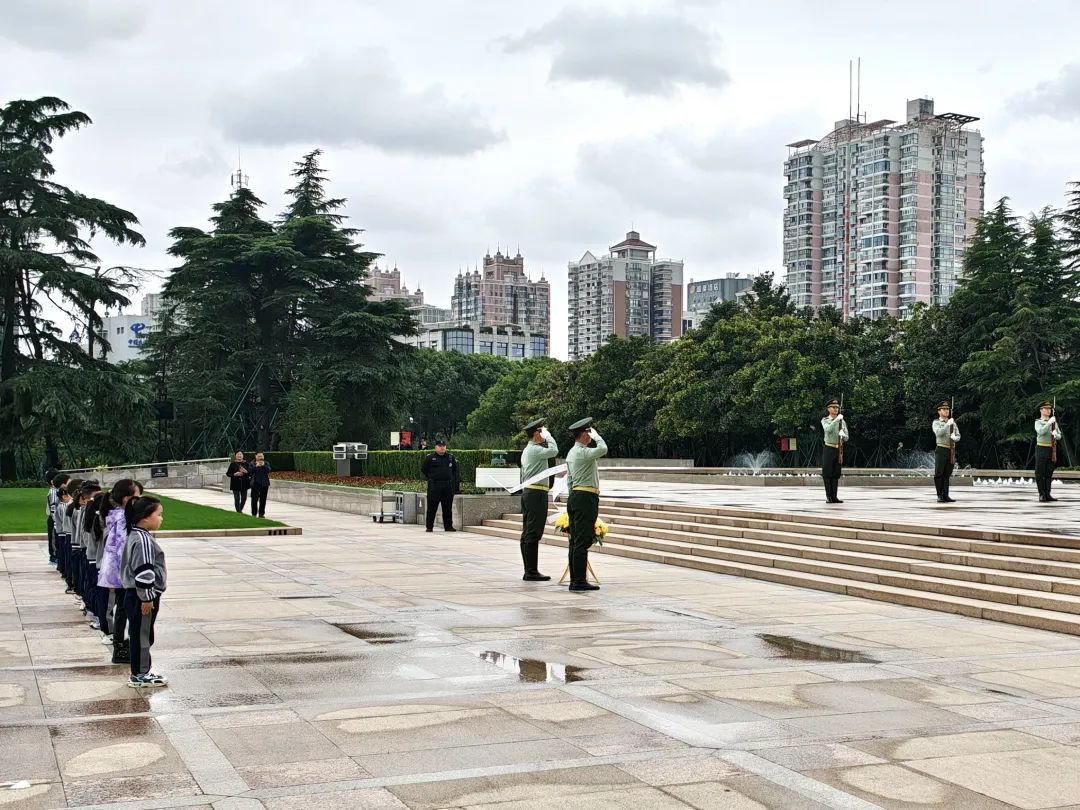 随后,“红色行走小课堂”的第二站来到了龙华烈士陵园广场。在这里,小朋友们整齐列队,参加了一场庄严肃穆的鲜花祭扫仪式。随着庄严的背景音乐响起,礼仪队带领着小朋友们向革命烈士敬献鲜花,并三鞠躬致敬。