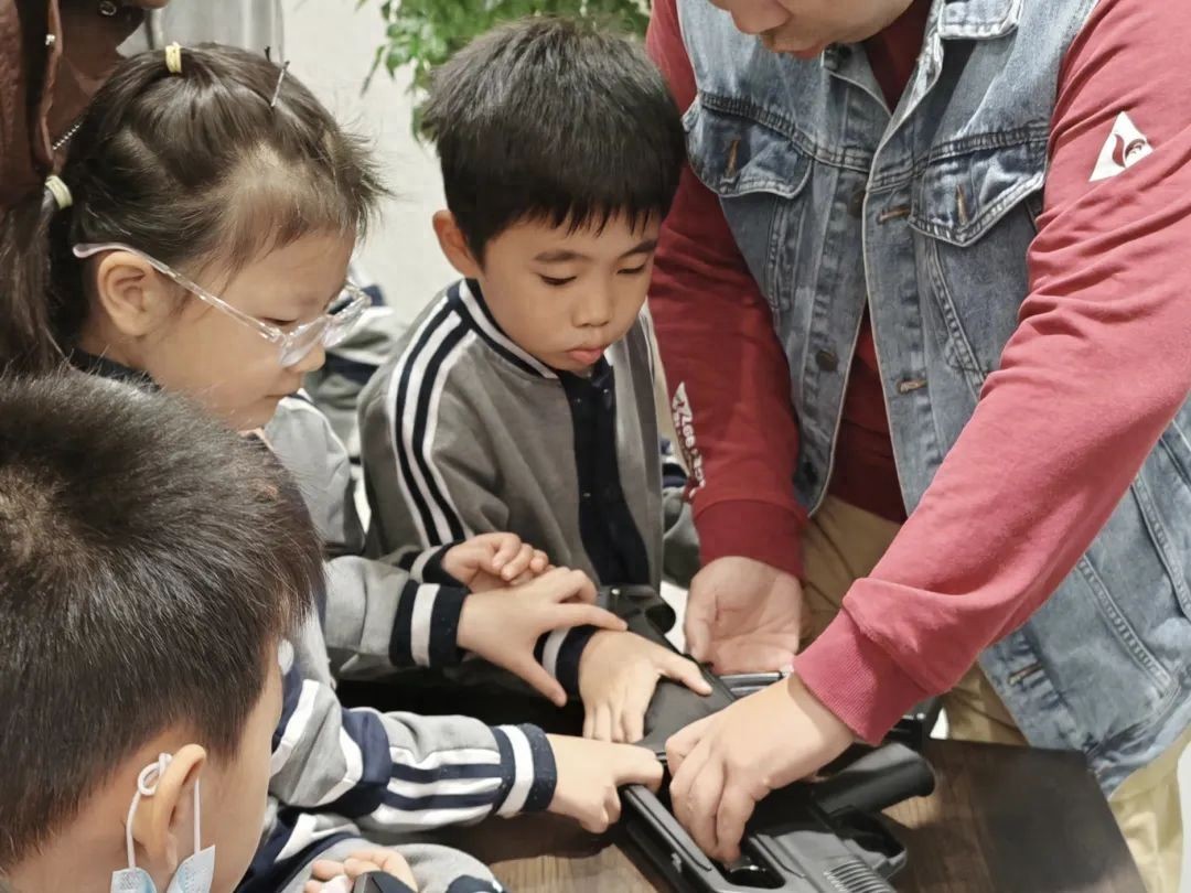在枪支的实物分解和上手操作环节,小朋友们纷纷上阵,亲手拆解和安装92手枪和95步枪,他们对设备零件充满了好奇和兴趣。